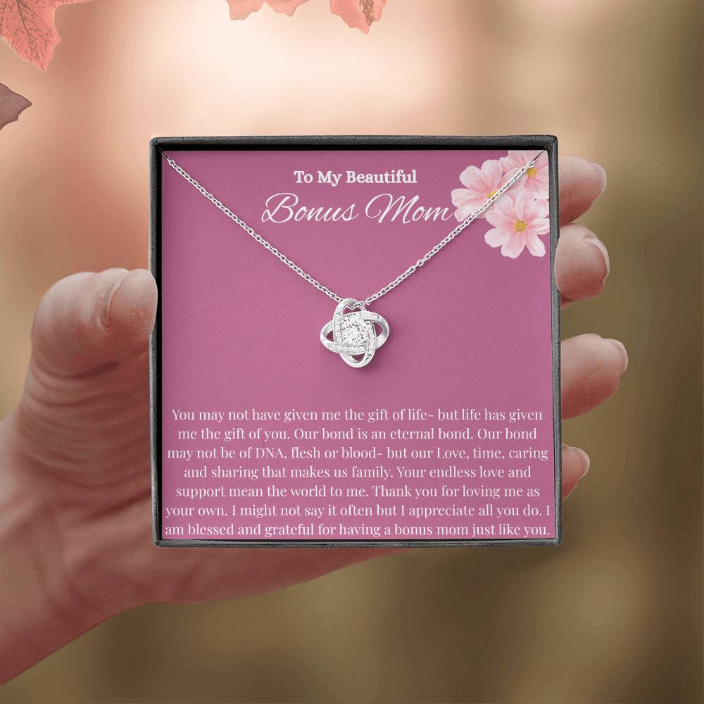 Bonus Mom Gift for Step Mother Gift from Bride, step mom gift for stepmom necklace, step mom wedding gift, Love Knot Necklace (Yellow & White Gold Variants)